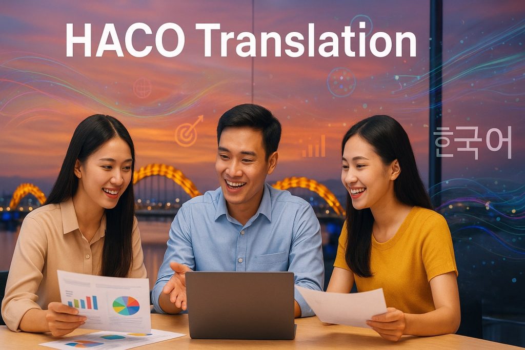 Trong thời đại marketing toàn cầu, tin thương hiệu đến từ Hàn Quốc hay hướng tới khách hàng Hàn tiêu chuẩn cao, việc đầu tư dịch thuật tài liệu marketing chất lượng là bước then chốt. Tại Đà Nẵng – trung tâm kinh tế sôi động, điểm đến của nhiều nhà đầu tư Hàn Quốc – HACO mang đến dịch vụ dịch thuật tiếng Hàn trọn gói, đảm bảo truyền tải cảm xúc thương hiệu và nội dung marketing một cách tinh tế, đồng bộ với văn hóa Hàn.